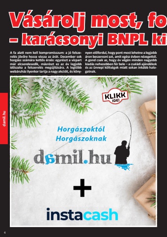 damil.hu4A fa alatt nem kell kompromisszum: a j%u00f3 felszerel%u00e9s j%u00f6v%u0151re hozza vissza az %u00e1r%u00e1t. December sok horg%u00e1sz sz%u00e1m%u00e1ra kett%u0151s %u00e9rz%u00e9s: egyr%u00e9szt a v%u00edzpart m%u00e1r elcsendesedik, m%u00e1sr%u00e9szt ez az %u00e9v legjobb id%u0151szaka a felszerel%u00e9s meg%u00faj%u00edt%u00e1s%u00e1ra. A legt%u00f6bb web%u00e1ruh%u00e1z ilyenkor tartja a nagy akci%u00f3it, %u00e9s k%u00f6n -nyen el%u0151fordul, hogy pont most lehetne a legjobb %u00e1ron beszerezni azt, amit eg%u00e9sz %u00e9vben n%u00e9zegett%u00e9l. A gond csak az, hogy %u00e9v v%u00e9g%u00e9n minden nagyobb kiad%u00e1s nehezebben f%u00e9r bele %u2013 a csal%u00e1di aj%u00e1nd%u00e9kok %u00e9s az %u00fcnnepi k%u00f6lts%u00e9gek miatt sokan ink%u00e1bb halo- gatnak.V%u00e1s%u00e1rolj most, fo%u2013 kar%u00e1csonyi BNPL kis
