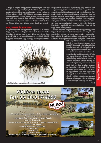 Hogy a helyzet m%u00e9g jobban bonyol%u00f3djon, van egy Tricolor nev%u0171 l%u00e9gy, amely alaphelyzetben egy, a lazaclegyekre jellemz%u0151 horogsz%u00e1rra feltekert arany sz%u00e1lfarokb%u00f3l %u00e9s h%u00e1rom sz%u00edn%u0171 tollb%u00f3l k%u00e9sz%u00fcl, amelyeket egym%u00e1s ut%u00e1n r%u00f6gz%u00edt%u00fcnk a sz%u00e1ron, feh%u00e9r, barna, fekete sorrendben a f%u00fcl fel%u00e9 haladva. Nos ennek is vannak %u00faj kelet%u0171 v%u00e1ltozatai, amelyekn%u00e9l a sorrend felcser%u00e9l%u0151dik %u00e9s barna, fekete, feh%u00e9r vagy fekete, barna, feh%u00e9r a sorrend.HOL, MIKOR %u00c9S HOGYAN?A legl%u00e9nyegesebb dolog minden l%u00e9gyn%u00e9l az a k%u00e9rd%u00e9s, hogy hol, mikor %u00e9s hogyan haszn%u00e1ljuk %u0151ket. Ezeket a legyeket %u00e1ltal%u00e1ban kisebb vagy k%u00f6zepes m%u00e9ret%u0171 horgokra k%u00f6tj%u00fck. A nedves v%u00e1ltozatokat k%u00e9sz%u00fclnek ink%u00e1bb nagyobb m%u00e9retben, %u00fagy 10-esig. Ez meghat%u00e1rozza a horg%u00e1szhat%u00f3 halakat is. A pisztr%u00e1ng, p%u00e9r, domi %u00e9s j%u00e1sz a legink%u00e1bb gyakori zs%u00e1km%u00e1ny ezekkel a legyekkel. Tavasszal apr%u00f3 feh%u00e9r palmerekkel sok k%u00fcsz is foghat%u00f3, b%u00e1r ezek minden apr%u00f3 sz%u00e1raz v%u00e1ltozatra j%u00f3l kapnak. Kora tavasszal a n%u00e1lunk nem annyira elterjedt sz%u00fcrke sz%u00edn%u0171ek lehetnek nagyon j%u00f3k, k%u00e9s%u0151bb a fekete sz%u00edn a legeredm%u00e9nyesebb szinte minden halra. Kora ny%u00e1ron a szint%u00e9n nem nagyon elterjedt s%u00e1rga %u00e9s z%u00f6ld sz%u00ednt %u00e9rdemes kipr%u00f3b%u00e1lni, legink%u00e1bb azokon a helyeken, ahol sok fa vagy bokor van a parton.K%u00fcl%u00f6n %u00e9rdemes megeml%u00edteni itt azt, hogy az egysz%u00edn%u0171 legyek haszn%u00e1latakor %u00e9rdemes figyelni az %u00e1rny%u00e9kos %u00e9s naps%u00fct%u00e9ses r%u00e9szekre a v%u00edzen, mert gyakori tapasztalat, hogy a halak %u00e1rny%u00e9kban a vil%u00e1gos, m%u00edg naps%u00fct%u00f6tte v%u00edzfel%u00fcleten a s%u00f6t%u00e9t legyeket r%u00e9szes%u00edtik el%u0151nyben. Szerintem a k%u00e9t- vagy h%u00e1romsz%u00edn%u0171ek ez%u00e9rt is terjedtek el nagyobb m%u00e9rt%u00e9kben, mert ezek j%u00f3l l%u00e1that%u00f3ak mind a k%u00e9tf%u00e9le helyen %u00e9s nem csak mi, de %u00fagy l%u00e1tszik, a halak is jobban %u00e9szreveszik %u0151ket.A domi %u00e9s a jaszk%u00f3 a nedves v%u00e1ltozatokat kedveli jobban, de k%u00fcl%u00f6n%u00f6sen eredm%u00e9nyesek r%u00e1juk a Behmek, val%u00f3sz%u00edn%u0171leg a v%u00f6r%u00f6s farok miatt. A Tricolor ellenben szinte mindig %u00e9s mindenh%u00f3l j%u00f3 lehet, mindenre. Ez az egyik legjobb l%u00e9gy, amelyet ismerek %u00e9s haszn%u00e1lok m%u00e1r %u00e9vek %u00f3ta. Sz%u00e1raz v%u00e1ltozata pisztr%u00e1ngra els%u0151 oszt%u00e1ly%u00fa, de fogtam m%u00e1r vele nem egy balint %u00e9s s%u00fcg%u00e9rt is. A Hern%u00e1don kis tiszta v%u00edzn%u00e9l, a g%u00f6dr%u00f6k vallat%u00e1s%u00e1ra majdnem olyan eredm%u00e9nyes, mint a RLH vagy a Yellow Midge. G%u00f6rb%u00fclj%u00f6n a bot!Prooflegyez%u0151horg%u00e1szat9Grifith%u2019s Gnat nem tartozik a palmers-ek k%u00f6z%u00e9