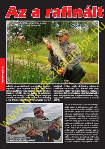 balinhorg%u00e1szat12A balin sokak %u00e1ltal lesz%u00f3lt, m%u00e1sok %u00e1ltal isten%u00edtett ragadoz%u00f3. Igen, egyesek lesz%u00f3lj%u00e1k, sz%u00e1lkaf%u0151ze- l%u00e9knek cs%u00fafolj%u00e1k, vagy lesz%u00f3lj%u00e1k az%u00e9rt, mert kifejezetten rafin%u00e1lt, nagyon %u00f3vatos %u00e9s tanul%u00e9kony halfaj. Sokan m%u00e9g akkor sem tudj%u00e1k megfogni, amikor a balinrabl%u00e1sokt%u00f3l folyamatosan fr%u00f6cs%u00f6g a v%u00edz. M%u00e1sok viszont, akik n%u00e9h%u00e1nyszor m%u00e1r beletal%u00e1ltak, %u00f6r%u00f6kre megfert%u0151z%u0151dtek a balinfog%u00e1s csod%u00e1latos var%u00e1zs%u00e1val. Igaz, k%u00f6nny%u0171 vele meg- bar%u00e1tkozni: hazai vizeinkben foghat%u00f3, ragadoz%u00f3 %u00e9letm%u00f3dot folytat%u00f3 halfajok k%u00f6z%u00fcl k%u00e9ts%u00e9gk%u00edv%u00fcl a balin a legsportosabb, a legvehemensebb. Meg- fog%u00e1s%u00e1nak sport%u00e9rt%u00e9ke sokak sz%u00e1m%u00e1ra a cs%u00facsot jelenti. A balin k%u00fcl%u00f6nf%u00e9le m%u0171csalikkal val%u00f3 horg%u00e1szata, vagyis a balinperget%u00e9s sok tekintetben nagyon hasonl%u00edt a s%u00fcll%u0151 %u00e9s a csuka m%u0171csalikkal pergetve t%u00f6rt%u00e9n%u0151 horg%u00e1szat%u00e1hoz, de legal%u00e1bb ilyen sokban k%u00fcl%u00f6nb%u00f6zik is azokt%u00f3l. A s%u00fcll%u0151 %u00e9s a csuka eset%u00e9ben sok t%u00e9nyez%u0151t (m%u0171csalikat, bevontat%u00e1si technik%u00e1t stb.) egy kalap al%u00e1 vehett%u00fcnk, mert mint azt l%u00e1thattuk, ami j%u00f3 volt a csuk%u00e1nak, az sok esetben j%u00f3 volt a s%u00fcll%u0151nek is, ez a meg%u00e1llap%u00edt%u00e1s pedig ford%u00edtva fokozottan igaz. Ha viszont c%u00e9lzottan balinra perget%u00fcnk, a s%u00fcll%u0151n%u00e9l %u00e9s a csuk%u00e1n%u00e1l m%u00e1r megismert m%u00f3dszerek, m%u0171csalik, bevontat%u00e1si technik%u00e1k a balin elt%u00e9r%u0151 %u00e9letm%u00f3dja, viselked%u00e9se, t%u00e1pl%u00e1lkoz%u00e1si szok%u00e1sai miatt az esetek t%u00falnyom%u00f3 t%u00f6bbs%u00e9g%u00e9ben cs%u0151d%u00f6t Az a rafin%u00e1lt A m%u0171csalikkal t%u00f6rt%u00e9n%u0151 balinperget%u00e9s sokban hasonl%u00edt a s%u00fcll%u0151 %u00e9s a csuka perget%u00e9shezA balin sokak %u00e1ltal lesz%u00f3lt,m%u00e1sok %u00e1ltal isten%u00edtett ragadoz%u00f3www.horgaszkalandok.hu