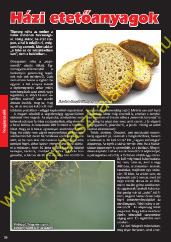 26horg%u00e1szcsalikT%u00f6preng n%u00e9ha az ember a halak %u00edzl%u00e9s%u00e9nek furcsas%u00e1gain. F%u0151leg akkor, ha etet sz%u00e9pen, a hal is odaj%u00f6n r%u00e1, m%u00e9gsem fog semmit. Mert akkor %u201ea hiba az %u00f6n k%u00e9sz%u00fcl%u00e9k%u00e9ben van%u201d, nem a halak%u00e9ban%u2026Olvasgatom n%u00e9ha a %u201enagymen%u0151k%u201d etet%u00e9si titkait. Tigrismogyor%u00f3-%u0151rlem%u00e9nyt%u0151l a herkenty%u0171s gezemic%u00e9ig reg%u00e9lnek m%u00e1r sok mindenr%u0151l. Csak nem %u00e9rtem benne a logik%u00e1t: ha egyszer a hal annyira szereti a tigrismogyor%u00f3t, akkor mi%u00e9rt nem horg%u00e1szik azzal senki, vagy legal%u00e1bbis, az abb%u00f3l k%u00e9sz%u00fclt valamif%u00e9le csalival? Van azut%u00e1n %u00e1nizsos %u00edzes%u00edt%u00e9s, meg ez, meg az, de az %u00e1nizsos kukoric%u00e1t m%u00e1r t%u00f6bbsz%u00f6r pr%u00f3b%u00e1ltam %u2013 el%u00e9gg%u00e9 kap%u00e1sn%u00e9lk%u00fcli napz%u00e1r%u00e1ssal.A magam r%u00e9sz%u00e9r%u0151l a v%u00e9gtelens%u00e9gig egyszer%u0171s%u00edtett elj%u00e1r%u00e1sok h%u00edve vagyok. Az olyanok%u00e9, amelyekhez nem kellenek sok ezer forintos csodaadal%u00e9kok, el%u00e9g elmenni a falusi boltba, %u00e9s beszerezni 200 forint%u00e9rt a hozz%u00e1val%u00f3kat. Hogy ez is hoz-e ugyanolyan eredm%u00e9nyt? Att%u00f3l f%u00fcgg. Ha valaki nem v%u00e1gyik negyvenfokos d%u00e9lben k%u00e9tsz%u00e1zharminch%u00e9t darab h%u00e1romdek%u00e1s apr%u00f3halra egy %u00f3ra alatt, %u00e9s ha nem akar minden%u00e1ron huszonh%u00e1rom kil%u00f3s pontyot fogni, akkor b%u00e1tran merem k%u00f6vet%u00e9sre aj%u00e1nlani a m%u00f3dszert. Mert 30 deka %u00e9s kil%u00f3 harminc k%u00f6z%u00f6tti keszegre, k%u00e1r%u00e1szra, mindj%u00e1rt t%u00edz kil%u00f3ra 3-4 %u00f3r%u00e1s horg%u00e1szattal, a h%u00e1rom darab kil%u00f3 %u00e9s n%u00e9gy kil%u00f3 k%u00f6z%u00f6tti t%u00edpuspontyra nekem eddig bej%u00f6tt. Mir%u0151l is van sz%u00f3? Apr%u00f3 fog%u00e1sokr%u00f3l, k%u00f6zte m%u00e9g olyanr%u00f3l is, amelyet a konyh%u00e1ban tanultam el (hiszen n%u00e9ha a %u201eteremt%u00e9s koron%u00e1ja%u201d is f%u0151z, f%u0151leg ha olyat akar enni, amit szeret%u2026) %u00c9s v%u00edzparti megfigyel%u00e9sr%u0151l, j%u00f3zan%u00e9szr%u0151l, a jelsz%u00f3: mindig az adott naphoz alkalmazkodj!Teh%u00e1t: etet%u00fcnk. Olyasmit, ami m%u00e1rciust%u00f3l novemberig egyar%u00e1nt j%u00f3, nemcsak a horg%u00e1szboltnak, hanem a halaknak is. Mi kell hozz%u00e1? K%u00e9t %u201enagyon k%u00fcl%u00f6nleges%u201d alapanyag. Az egyik a sz%u00e1raz keny%u00e9r. Ami, ha a h%u00e1ztart%u00e1sban %u00e9ppen nem is termel%u0151dik, de a boltban, f%u0151leg vid%u00e9ken kaphat%u00f3. Hetven %u00e9s sz%u00e1z forint k%u00f6r%u00fcl adj%u00e1k kil%u00f3j%u00e1t, a p%u00e9ks%u00e9gekben olcs%u00f3bb, a t%u00f6bbiben ink%u00e1bb egy sz%u00e1zas. %u00c9s kell m%u00e9g hozz%u00e1 kukoricadara. No nem, nem az, amit a nagy ABC-ben, %u00e1ruh%u00e1zakban %u00e1rulnak, tasakolva, majdnem egy sz%u00e1zas%u00e9rt f%u00e9l kil%u00f3t. Az %u00e1r%u00e1%u00e9rt sem, de legink%u00e1bb az%u00e9rt nem j%u00f3, mert t%u00fal nagy szem%u0171, durva ez az %u0151rlem%u00e9ny. Ink%u00e1bb gr%u00edzre eml%u00e9keztet. Az ugyancsak tasakolt kukoricaliszt pedig m%u00e1r t%u00fal %u201epuha%u201d, t%u00fal finom, nagyon hamar %u00f6ssze tudja fogni betonkem%u00e9nys%u00e9g%u0171v%u00e9 az etet%u0151anyagot. Teh%u00e1t ir%u00e1ny a term%u00e9nybolt. Az alapanyag teh%u00e1t megvolna. Hogy kell-e %u00edzes%u00edteni? %u00c1prilis k%u00f6zep%u00e9t%u0151l szeptember v%u00e9g%u00e9ig nem. %u00c9n legal%u00e1bbis nem szoktam. Az idei hidegebb m%u00e1rciusban, meg olyan helyeken, ahol a verH%u00e1zi etet%u00f4anyagokA sz%u00e1raz keny%u00e9r k%u00f6nnyen beszerezhet%u0151V%u00edzf%u00fcgg%u0151, hogy mennyire kem%u00e9ny gomb%u00f3cot k%u00e9sz%u00edt%u00fcnkwww.horgaszkalandok.hu