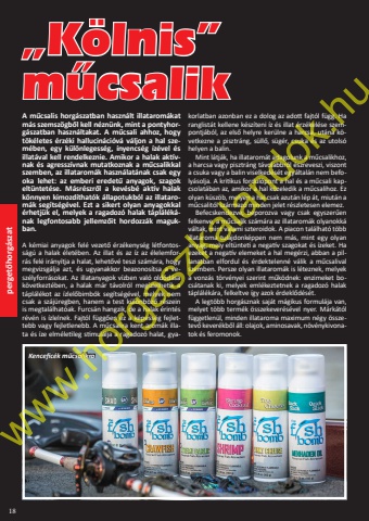 18perget%u0151horg%u00e1szatA m%u0171csalis horg%u00e1szatban haszn%u00e1lt illatarom%u00e1kat m%u00e1s szemsz%u00f6gb%u0151l kell n%u00e9zn%u00fcnk, mint a pontyhorg%u00e1szatban haszn%u00e1ltakat. A m%u0171csali ahhoz, hogy t%u00f6k%u00e9letes %u00e9rz%u00e9ki hallucin%u00e1ci%u00f3v%u00e1 v%u00e1ljon a hal sze- m%u00e9ben, egy k%u00fcl%u00f6nlegess%u00e9g, %u00ednyencs%u00e9g %u00edz%u00e9vel %u00e9s illat%u00e1val kell rendelkeznie. Amikor a halak akt%u00edv- nak %u00e9s agressz%u00edvnak mutatkoznak a m%u0171csalikkal szemben, az illatarom%u00e1k haszn%u00e1lat%u00e1nak csak egy oka lehet: az emberi eredet%u0171 anyagok, szagok elt%u00fcntet%u00e9se. M%u00e1sr%u00e9szr%u0151l a kev%u00e9sb%u00e9 akt%u00edv halak k%u00f6nnyen kimozd%u00edthat%u00f3k %u00e1llapotukb%u00f3l az illataro- m%u00e1k seg%u00edts%u00e9g%u00e9vel. Ezt a sikert olyan anyagokkal %u00e9rhetj%u00fck el, melyek a ragadoz%u00f3 halak t%u00e1pl%u00e1l%u00e9k%u00e1- nak legfontosabb jellemz%u0151it hordozz%u00e1k maguk- ban.A k%u00e9miai anyagok fel%u00e9 vezet%u0151 %u00e9rz%u00e9kenys%u00e9g l%u00e9tfontoss%u00e1g%u00fa a halak %u00e9let%u00e9ben. Az illat %u00e9s az %u00edz az %u00e9lelemforr%u00e1s fel%u00e9 ir%u00e1ny%u00edtja a halat, lehet%u0151v%u00e9 teszi sz%u00e1m%u00e1ra, hogy megvizsg%u00e1lja azt, %u00e9s ugyanakkor beazonos%u00edtsa a vesz%u00e9lyforr%u00e1sokat. Az illatanyagok v%u00edzben val%u00f3 old%u00f3d%u00e1sa k%u00f6vetkezt%u00e9ben, a halak m%u00e1r t%u00e1volr%u00f3l meg%u00edzlelhetik a t%u00e1pl%u00e1l%u00e9kot az %u00edzlel%u0151bimb%u00f3k seg%u00edts%u00e9g%u00e9vel, melyek nem csak a sz%u00e1j%u00fcregben, hanem a test k%u00fcl%u00f6nb%u00f6z%u0151 r%u00e9szein is megtal%u00e1lhat%u00f3ak. Furcs%u00e1n hangzik, de a halak %u00e9rint%u00e9s r%u00e9v%u00e9n is %u00edzlelnek. Fajt%u00f3l f%u00fcgg%u0151en ez a k%u00e9pess%u00e9g fejlettebb vagy fejletlenebb. A m%u0171csalira kent arom%u00e1k illata %u00e9s %u00edze elm%u00e9letileg stimul%u00e1lja a ragadoz%u00f3 halat, gyakorlatban azonban ez a dolog az adott fajt%u00f3l f%u00fcgg. Ha ranglist%u00e1t kellene k%u00e9sz%u00edteni %u00edz %u00e9s illat %u00e9rz%u00e9kel%u00e9se szempontj%u00e1b%u00f3l, az els%u0151 helyre ker%u00fclne a harcsa, ut%u00e1na k%u00f6vetkezne a pisztr%u00e1ng, s%u00fcll%u0151, s%u00fcg%u00e9r, csuka %u00e9s az utols%u00f3 helyen a balin. Mint l%u00e1tj%u00e1k, ha illatarom%u00e1t adagolunk a m%u0171csalikhoz, a harcsa vagy pisztr%u00e1ng t%u00e1volabbr%u00f3l %u00e9szreveszi, viszont a csuka vagy a balin viselked%u00e9s%u00e9t egy%u00e1ltal%u00e1n nem befoly%u00e1solja. A kritikus fordul%u00f3pont a hal %u00e9s a m%u0171csali kapcsolat%u00e1ban az, amikor a hal k%u00f6zeledik a m%u0171csalihoz. Ez olyan k%u00fcsz%u00f6b, melyen a hal csak azut%u00e1n l%u00e9p %u00e1t, miut%u00e1n a m%u0171csalit%u00f3l sz%u00e1rmaz%u00f3 minden jelet r%u00e9szletesen elemez. Befecskendezve, beporozva vagy csak egyszer%u0171en felkenve, a m%u0171csalik sz%u00e1m%u00e1ra az illatarom%u00e1k olyanokk%u00e1 v%u00e1ltak, mint valami szteroidok. A piacon tal%u00e1lhat%u00f3 t%u00f6bb illataroma tulajdonk%u00e9ppen nem m%u00e1s, mint egy olyan anyag, mely elt%u00fcnteti a negat%u00edv szagokat %u00e9s %u00edzeket. Ha ezeket a negat%u00edv elemeket a hal meg%u00e9rzi, abban a pillanatban elfordul %u00e9s %u00e9rdektelenn%u00e9 v%u00e1lik a m%u0171csalival szemben. Persze olyan illatarom%u00e1k is l%u00e9teznek, melyek a vonz%u00e1s t%u00f6rv%u00e9nyei szerint m%u0171k%u00f6dnek: enzimeket bocs%u00e1tanak ki, melyek eml%u00e9keztetnek a ragadoz%u00f3 halak t%u00e1pl%u00e1l%u00e9k%u00e1ra, felkeltve %u00edgy azok %u00e9rdekl%u0151d%u00e9s%u00e9t. A legt%u00f6bb horg%u00e1sznak saj%u00e1t m%u00e1gikus formul%u00e1ja van, melyet t%u00f6bb term%u00e9k %u00f6sszekever%u00e9s%u00e9vel nyer. M%u00e1rk%u00e1t%u00f3l f%u00fcggetlen%u00fcl, minden illataroma maximum n%u00e9gy %u00f6sszetev%u0151 kever%u00e9kb%u0151l %u00e1ll: olajok, aminosavak, n%u00f6v%u00e9nykivonatok %u00e9s feromonok.%u201eK%u00f6lnis%u201d m%u00fbcsalikKencefic%u00e9k m%u0171csalikrawww.horgaszkalandok.hu