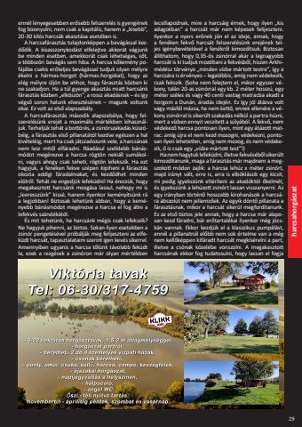 29 harcsahorg%u00e1szatenn%u00e9l l%u00e9nyegesebben er%u0151sebb felszerel%u00e9s is gyeng%u00e9nek fog bizonyulni, nem csak a kapit%u00e1lis, hanem a %u201ekisebb%u201d, 20-30 kil%u00f3s harcs%u00e1k akaszt%u00e1sa eset%u00e9ben is.A harcsaf%u00e1raszt%u00e1s tulajdonk%u00e9ppen a bev%u00e1g%u00e1ssal kezd%u0151dik. A kisasszonykod%u00e1st elfelejtve akkor%u00e1t v%u00e1gjunk be minden esetben, amekkor%u00e1t csak lehets%u00e9ges, s%u0151t, a t%u00f6bbsz%u00f6ri bev%u00e1g%u00e1s sem hiba. A harcsa k%u0151kem%u00e9ny pof%u00e1j%u00e1ba csakis er%u0151teljes bev%u00e1g%u00e1ssal tudjuk olyan m%u00e9lyre %u00e9kelni a h%u00e1rmas-horgot (h%u00e1rmas-horgokat), hogy az el%u00e9g m%u00e9lyre %u00fclj%u00f6n be ahhoz, hogy f%u00e1raszt%u00e1s k%u00f6zben ki ne szakadjon. Ha a t%u00fal gyenge akaszt%u00e1s miatt harcs%u00e1nk f%u00e1raszt%u00e1s k%u00f6zben %u201eelk%u00f6sz%u00f6n%u201d, a rossz akad%u00e1snak %u2013 %u00e9s %u00edgy v%u00e9gs%u0151 soron halunk elveszt%u00e9s%u00e9nek %u2013 magunk voltunk okai. Ez volt az els%u0151 alapszab%u00e1ly.A harcsaf%u00e1raszt%u00e1s m%u00e1sodik alapszab%u00e1lya, hogy felszerel%u00e9s%u00fcnk erej%u00e9t a maxim%u00e1lis m%u00e9rt%u00e9kben kihaszn%u00e1ljuk. Terhelj%u00fck teh%u00e1t a bott%u00f6r%u00e9s, a zsin%u00f3rszakad%u00e1s k%u00fcsz%u00f6b%u00e9ig, a f%u00e1raszt%u00e1s els%u0151 pillanat%u00e1t%u00f3l kezdve eg%u00e9szen a hal kiv%u00e9tel%u00e9ig, mert ha csak j%u00e1tszadozunk vele, a harcs%u00e1nak nem lesz mit%u0151l elf%u00e1radni. R%u00e1ad%u00e1sul szel%u00eddebb b%u00e1n%u00e1sm%u00f3dot meg%u00e9rezve a harcsa r%u00f6gt%u00f6n neki%u00e1ll sum%u00e1kolni, vagyis ahogy csak teheti, r%u00f6gt%u00f6n lefekszik. Ha ezt hagyjuk, a fen%u00e9ken fekve sz%u00e9pen kipiheni a f%u00e1raszt%u00e1s okozta addigi f%u00e1radalmakat, %u00e9s kezd%u0151dhet minden el%u00f6lr%u0151l. Teh%u00e1t ne engedj%u00fck lefek%u00fcdni! Ha %u00e9rezz%u00fck, hogy megakasztott harcs%u00e1nk mozg%u00e1sa lassul, nehogy mi is %u201eleeressz%u00fcnk%u201d kiss%u00e9, hanem ilyenkor kem%u00e9ny%u00edts%u00fcnk r%u00e1 a legjobban! Biztosak lehet%u00fcnk abban, hogy a kem%u00e9nyebb b%u00e1n%u00e1sm%u00f3dot meg%u00e9rezve a harcsa el fog %u00e1llni a lefekv%u00e9s sz%u00e1nd%u00e9k%u00e1t%u00f3l. %u00c9s mit tehet%u00fcnk, ha harcs%u00e1nk m%u00e9gis csak lefekszik? Ne hagyjuk pihenni, az biztos. Sokan ilyen esetekben a zsin%u00f3r penget%u00e9s%u00e9vel pr%u00f3b%u00e1lj%u00e1k meg felijeszteni az elfek%u00fcdt harcs%u00e1t, tapasztalataim szerint igen kev%u00e9s sikerrel. Amennyiben ugyanis a harcsa t%u0151l%u00fcnk t%u00e1volabb fek%u00fcdt le, ezek a rezg%u00e9sek a zsin%u00f3ron m%u00e1r olyan m%u00e9rt%u00e9kben lecsillapodnak, mire a harcs%u00e1ig %u00e9rnek, hogy ilyen %u201ekis adagokban%u201d a harcs%u00e1t m%u00e1r nem k%u00e9pesek felijeszteni. Ilyenkor a nyers er%u0151nek j%u00f6n el az ideje, annak, hogy a fen%u00e9ken fekv%u0151 harcs%u00e1t felszerel%u00e9s%u00fcnk erej%u00e9nek teljes ig%u00e9nybev%u00e9tel%u00e9vel a fen%u00e9kr%u0151l kimozd%u00edtsuk. Biztosan %u00e1ll%u00edthatom, hogy 0,35-%u00f6s zsin%u00f3rral ak%u00e1r a legnagyobb harcs%u00e1t is ki tudjuk mozd%u00edtani a fekv%u00e9sb%u0151l, hiszen Arkhim%u00e9d%u00e9sz t%u00f6rv%u00e9nye %u201eminden v%u00edzbe m%u00e1rtott testre%u201d, %u00edgy a harcs%u00e1ra is %u00e9rv%u00e9nyes %u2013 legal%u00e1bbis, am%u00edg nem v%u00e9dekezik, csak fekszik. (Soha nem felejtem el, mikor egyszer v%u00e9kony, tal%u00e1n 20-as zsin%u00f3rral egy kb. 2 m%u00e9ter hossz%u00fa, egy m%u00e9ter sz%u00e9les %u00e9s vagy 40 centi vastag matracba akadt a horgom a Dun%u00e1n, %u00e1rad%u00e1s idej%u00e9n. Ez %u00edgy j%u00f3l %u00e1t%u00e1zva volt vagy m%u00e1sf%u00e9l m%u00e1zsa, ha nem kett%u0151, ennek ellen%u00e9re a v%u00e9kony zsin%u00f3rral is siker%u00fclt szakad%u00e1s n%u00e9lk%u00fcl a partra h%u00fazni, mert a v%u00edzben ennyit vesz%u00edtett a s%u00faly%u00e1b%u00f3l. A fekv%u0151, nem v%u00e9dekez%u0151 harcsa pontosan ilyen, mint egy %u00e1t%u00e1zott matrac: am%u00edg %u00fajra el nem kezd mozogni, v%u00e9dekezni, pontosan ilyen lehetetlen, am%u00edg nem mozog, %u00e9s nem v%u00e9dekezik, %u0151 is csak egy %u201ev%u00edzbe m%u00e1rtott test%u201d!)Ha nem hagytuk lefek%u00fcdni, illetve fekv%u00e9s%u00e9b%u0151l siker%u00fclt kimozd%u00edtanunk, maga a f%u00e1raszt%u00e1s m%u00e1r majdnem a megszokott m%u00f3don zajlik: a harcsa leh%u00faz x m%u00e9ter zsin%u00f3rt, majd ir%u00e1nyt v%u00e1lt, erre is, arra is elb%u00f3kl%u00e1szik egy kicsit, mi pedig igyeksz%u00fcnk elt%u00e9r%u00edteni az akad%u00f3kt%u00f3l %u0151kelm%u00e9t, %u00e9s igyeksz%u00fcnk a leh%u00fazott zsin%u00f3rt lassan visszanyerni. Az egy ir%u00e1nyban t%u00f6rt%u00e9n%u0151 hosszabb kirohan%u00e1sok a harcs%u00e1ra abszol%u00fat nem jellemz%u0151ek. Az egyik d%u00f6nt%u0151 pillanata a f%u00e1raszt%u00e1snak, mikor a harcs%u00e1t siker%u00fcl megford%u00edtanunk. Ez az els%u0151 biztos jele annak, hogy a harcsa m%u00e1r alaposan kezd f%u00e1radni, b%u00e1r er%u0151tartal%u00e9kai ilyenkor m%u00e9g j%u00f3csk%u00e1n vannak. Ekkor kezdj%u00fck el a klasszikus pump%u00e1l%u00e1st, enn%u00e9l a pillanatn%u00e1l el%u0151bb nem sok %u00e9rtelme van a m%u00e9g nem kell%u0151k%u00e9ppen kif%u00e1radt harcs%u00e1t megk%u00eds%u00e9relni a part, illetve a cs%u00f3nak k%u00f6zel%u00e9be vonszolni. A megakasztott harcs%u00e1nak ekkor fog tudatosulni, hogy lassan el fogja