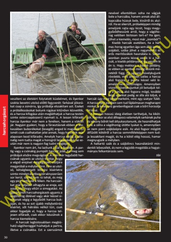 30harcsahorg%u00e1szatvesz%u00edteni az %u00e9let%u00e9%u00e9rt folytatott k%u00fczdelmet, %u00e9s ilyenkor szokta bevetni utols%u00f3 el%u0151tti fegyver%u00e9t: fark%u00e1val j%u00f3kor%u00e1kat csap a zsin%u00f3rra, %u00edgy pr%u00f3b%u00e1lja elszak%u00edtani azt. Ezeket a pr%u00f3b%u00e1lkoz%u00e1sokat botunk r%u00fag%u00e1sai kit%u0171n%u0151en k%u00f6zvet%u00edtik, %u00e9s a harcsa kifog%u00e1sa ut%u00e1n megl%u00e1thatjuk a harcsa test%u00e9n szinte ostorcsap%u00e1sszer%u0171 nyomait is. A lassan kif%u00e1rad%u00f3 harcsa ilyenkor m%u00e1r nem a fen%u00e9ken, hanem a v%u00edzk%u00f6zt j%u00e1r. Nagyon gyakori, hogy a f%u00e1raszt%u00e1snak ebben a szakasz%u00e1ban bubor%u00e9kokat (leveg%u0151t) enged ki mag%u00e1b%u00f3l. Ez ism%u00e9t csak csalhatatlan jelei annak, hogy harcs%u00e1nk m%u00e1r alaposan kezd kif%u00e1radni. Amelyik harcsa eddig a pillanatig nem tudta mag%u00e1t a horogr%u00f3l le%u00fcgyeskedni, az ezut%u00e1n m%u00e1r nem is nagyon fog tudni megl%u00e9pni.Ilyenkor nem %u00e1rt, ha laz%u00edtunk kiss%u00e9 a fen%u00e9ken. A partig vagy a cs%u00f3nakig pump%u00e1lt harcs%u00e1t jobb, ha meg sem pr%u00f3b%u00e1juk els%u0151re megv%u00e1g%u00f3zni. A m%u00e1r-m%u00e1r legy%u0151z%u00f6tt harcs%u00e1nak ugyanis az utols%u00f3 tr%u00fckkje, hogy a v%u00e9gs%u0151 erej%u00e9vel m%u00e9g egyszer, utolj%u00e1ra megpr%u00f3b%u00e1l a m%u00e9lybe t%u00f6rni. Erre az utols%u00f3, k%u00e9ts%u00e9gbeesett kit%u00f6r%u00e9si k%u00eds%u00e9rletre szinte minden esetben t%u00f6rv%u00e9nyszer%u0171en sor ker%u00fcl, sz%u00e1m%u00edtsunk r%u00e1 teh%u00e1t, %u00e9s m%u00e9g egy picit laz%u00edtsunk a f%u00e9ken. Ha harcs%u00e1nkat m%u00e1r teljesen elhagyta az ereje, ezt azzal jelzi, hogy elt%u0171ri a simogat%u00e1st. Az igaz%u00e1n profi harcsahorg%u00e1szok ugyanis a v%u00e1g%u00f3horog %u00f6bl%u00e9vel vagy ak%u00e1r k%u00e9zzel sim%u00edtanak v%u00e9gig a legy%u0151z%u00f6tt harcsa buksij%u00e1n, %u00e9s ha az ezt %u00fajabb m%u00e9lybet%u00f6r%u00e9si k%u00eds%u00e9rlet, s%u0151t h%u00e1tr%u00e1l%u00e1s n%u00e9lk%u00fcl t%u0171ri, csak akkor fogadj%u00e1k el, hogy a harcsa teljesen elf%u00e1radt, csak ekkor k%u00e9sz%u00fclnek a harcsa kiemel%u00e9s%u00e9re. A harcs%u00e1t legbiztosabban megb%u00edzhat%u00f3 v%u00e1g%u00f3horoggal h%u00fazhatjuk a partra, illetve a cs%u00f3nakba. Ezt a szersz%u00e1mot nev%u00e9vel ellent%u00e9tben soha ne v%u00e1gjuk bele a harcs%u00e1ba, hanem annak als%u00f3 %u00e1llkapcs%u00e1ba h%u00fazzuk bele, k%u00edv%u00fclr%u0151l %u00e9s alulr%u00f3l. Ha ez siker%u00fclt, pr%u00f3bak%u00e9ppen mindig emelj%u00fcnk rajta egy kicsit, hogy meg -gy%u0151z%u0151dhess%u00fcnk arr%u00f3l, hogy a v%u00e1g%u00f3horog val%u00f3ban biztosan tart-e? Ha igen, j%u00f6het a kiemel%u00e9s, most m%u00e1r %u201eizomb%u00f3l%u201d!Kisebb harcs%u00e1k eset%u00e9ben, ha a h%u00e1rmas-horog egyetlen %u00e1ga sem %u00e1ll ki annak sz%u00e1j%u00e1b%u00f3l, sz%u00f3ba j%u00f6het a nagym%u00e9ret%u0171 %u00e9s er%u0151s mer%u00edt%u0151sz%u00e1kok haszn%u00e1lata is. Sokan azonban puszta k%u00e9zzel veszik ki a harcs%u00e1t, a kisebb p%u00e9ld%u00e1nyokat %u00edgy veszem ki %u00e9n is. Hogy mekkora a kisebb p%u00e9ld%u00e1ny, ez ebben az esetben mindig kez%u00fcnk m%u00e9ret%u00e9t%u0151l f%u00fcgg. Ha ugyanis h%u00fcvelykujjunk r%u00f6videbb, mint amilyen sz%u00e9les a harcsa als%u00f3 fogsora, a puszta k%u00e9zzel val%u00f3 kiemel%u00e9s nem biztons%u00e1gos. Amennyiben viszont h%u00fcvelykujjunkat j%u00f3l betudjuk tolni a harcsa als%u00f3 fogsora m%u00f6g%u00e9, tov%u00e1bbi n%u00e9gy ujjunkat pedig az %u00e1lla al%u00e1 toljuk, a harcs%u00e1t %u00fagy meg lehet markolni, mint egy szatyor f%u00fcl%u00e9t. A harcsa ilyen esetben sem tud f%u00e1jdalmasan megharapni minket, a kefeszer%u0171 gerebenfogazat csak a b%u0151rt horzsolja fel kiss%u00e9.A harcs%u00e1t hossz%u00fa ideig %u00e9letben tarthatjuk, ha kik%u00f6tj%u00fck. Ilyenkor az als%u00f3 %u00e1llkapocs valamelyik sark%u00e1nak puha %u00e9s v%u00e9kony b%u0151r%u00e9t kell %u00e1tlyukasztanunk, de haszn%u00e1lhatjuk erre a c%u00e9lra a v%u00e1g%u00f3horog %u00fct%u00f6tte lyukat is, amennyiben az nem pont sz%u00e1jk%u00f6z%u00e9pre esik. Az als%u00f3 fogsor m%u00f6g%u00f6tt %u00e1tf%u0171z%u00f6tt k%u00f6t%u00e9lr%u0151l a harcsa semmif%u00e9lek%u00e9ppen nem tudja leszak%u00edtani mag%u00e1t, %u00e9s ha a k%u00f6t%u00e9l el%u00e9g hossz%u00fa, hamar megnyugszik a m%u00e9lyben.A haltart%u00f3 sz%u00e1k %u00e9s a sz%u00e1jbilincs haszn%u00e1lat%u00e1r%u00f3l mindenkit lebesz%u00e9lek, %u00e9s nem a legjobb megold%u00e1s a hagyom%u00e1nyos felkant%u00e1roz%u00e1s sem. tibiwww.horgaszkalandok.hu